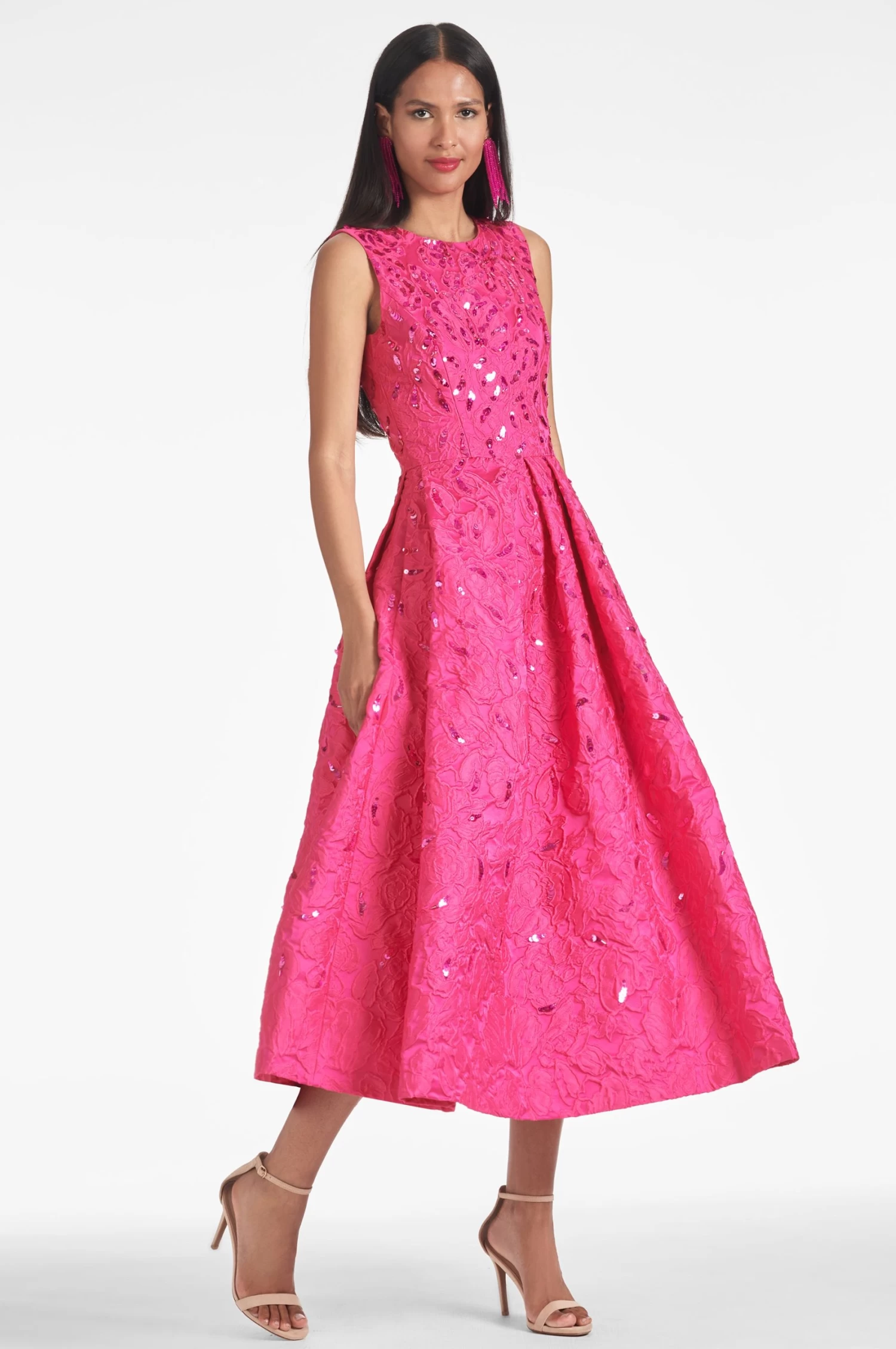 The Ashley Gown is perfect for any occasion. This tea-length silhouette flaunts in fuchsia and is sure to stand out. Comfortable and stylish, this sparkling gown will make heads turn. Ashley Gown is designed to flatter any figure. The eye-catching construction and comfortable fit make this gown a must-have for any wardrobe.
