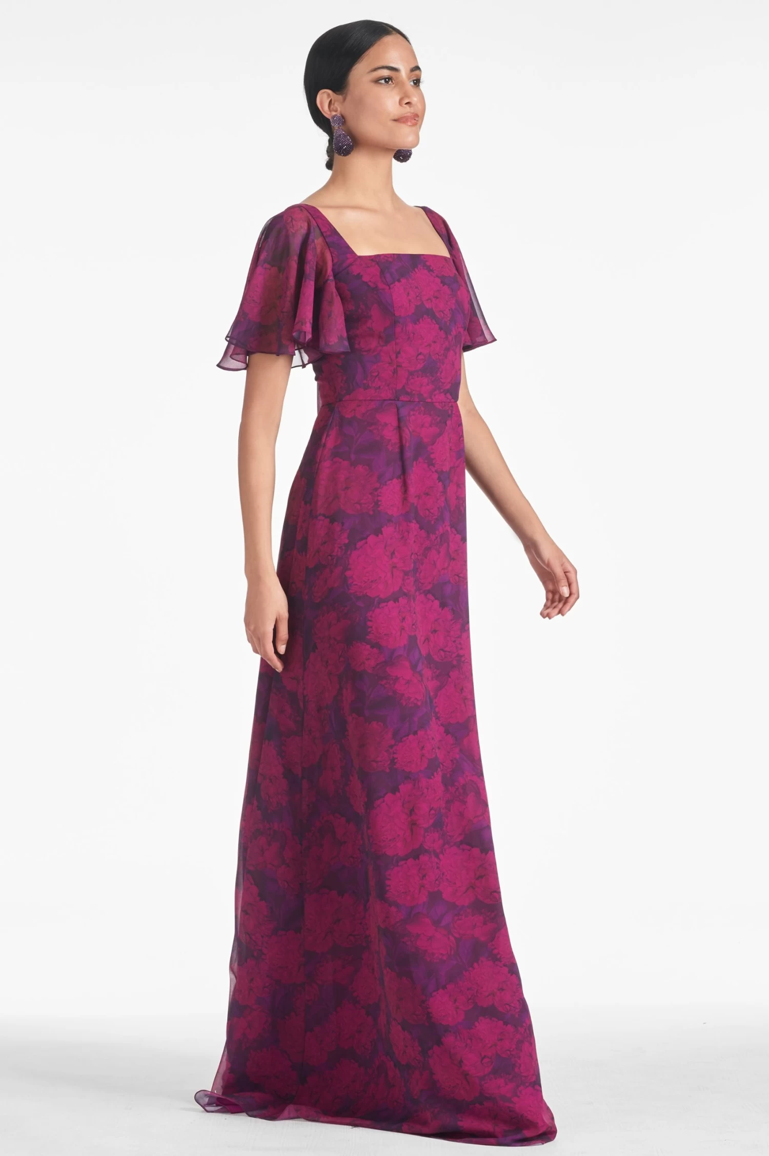 The Aurora Gown is the perfect choice for your bridesmaids to look and feel their best on your big day. The flattering silhouette and flutter sleeves give them a classic, timeless look.Â