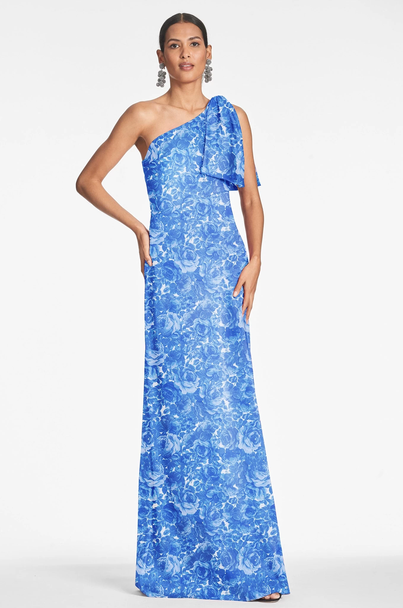 The Chelsea gown is an example of balance by design. A sleek sleeve of crinkle georgette is cut on the bias with an asymmetric seam at the waist, creating a column for curves. At the shoulder sits a hand-tucked, stitched-on collapsed bow. We design all of our Essential Social dresses with the intention that they can be enjoyed again and again. After all, a beautiful dress should be worn often and well.