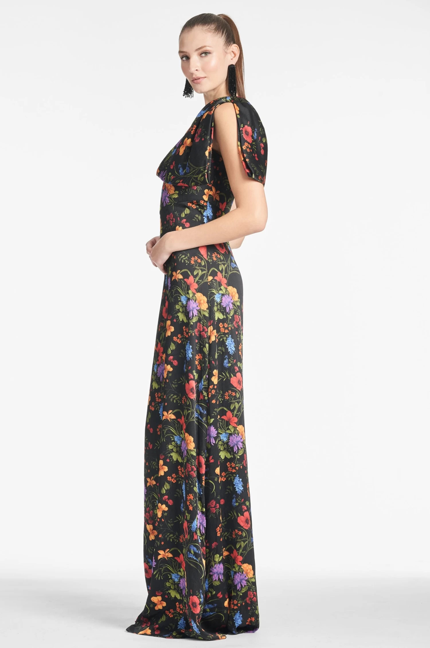The Chelsea gown in our Noir Wildflower print is an example of balance by design. A sleek sleeve of crinkle georgette is cut on the bias with an asymmetric seam at the waist, creating a column for curves. At the shoulder sits a hand-tucked, stitched-on collapsed bow. We design all of our Essential Social dresses with the intention that they can be enjoyed again and again. After all, a beautiful dress should be worn often and well.