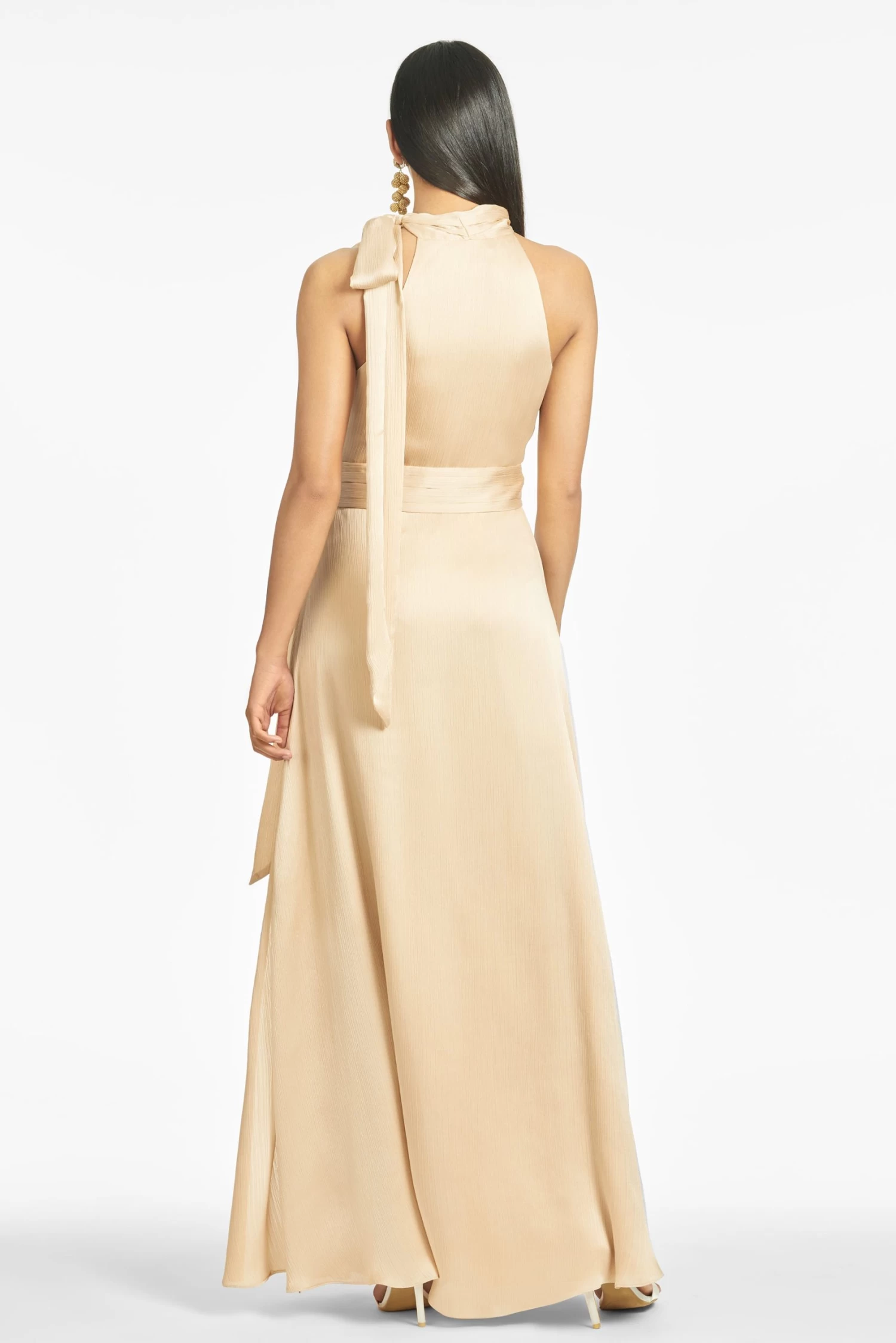 Kayla, simple yet romantic, is an elegant maxi dress with a self-tie at the neckline. The stitched-on pleated waistband hits at the true waist for the most flattering shape. We design all of our dresses in the Essential Social collection with the intention that they can be enjoyed again and again. A timeless dress should be worn often and well.
