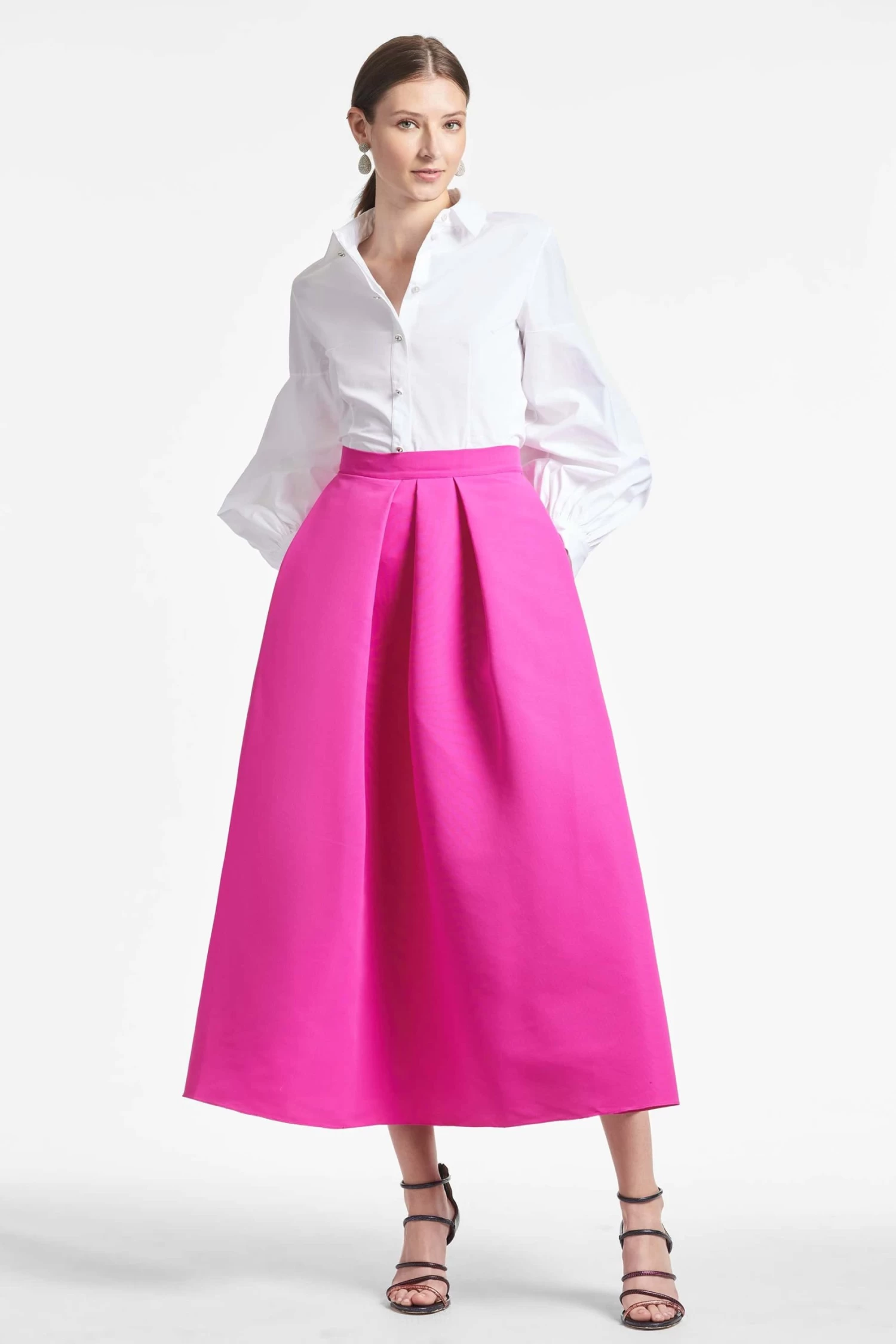 There are few things that are as perennial as the “Party” skirt. The tea-length box pleat event skirt can easily be worn 12 months out of the year. It can be paired with the coordinating bralette tops, or as an item it can easily go back to a crisp with a crisp white blouse or black turtleneck.