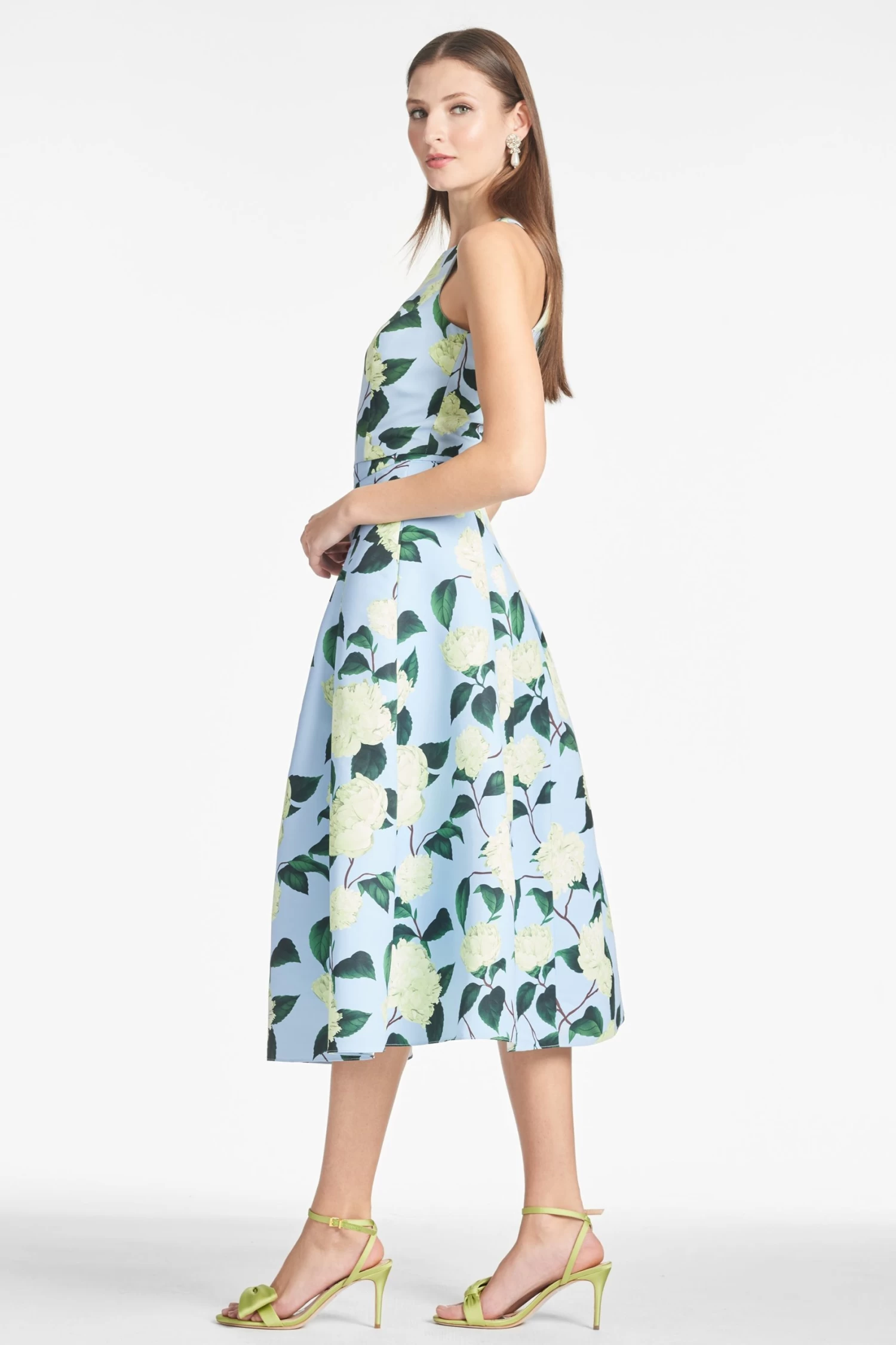 Introducing the Lydia Skirt in our Sky Citrine Peonies print- a luxurious piece inspired by our iconic Leighton skirt. Crafted from Mikado fabric in our new standout green and blue bloom print, it pairs beautifully with the complementary Astor Top or Lexie Top.