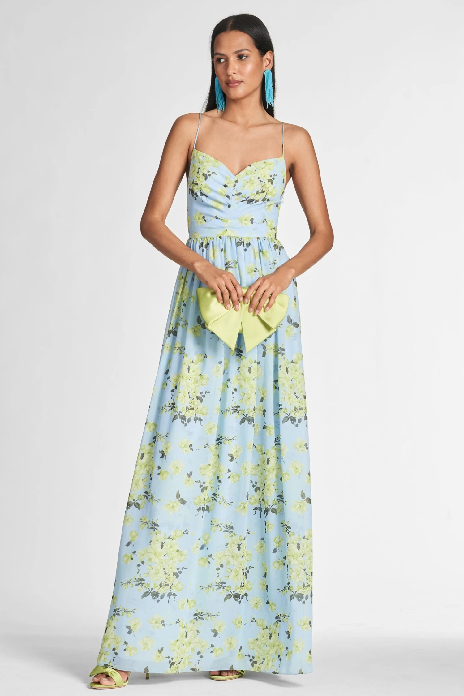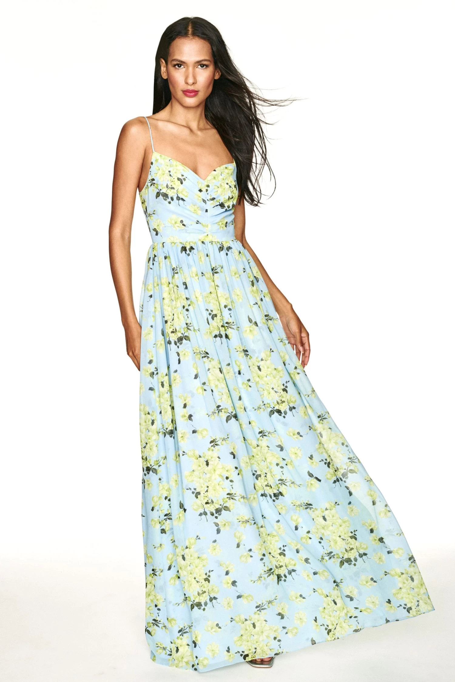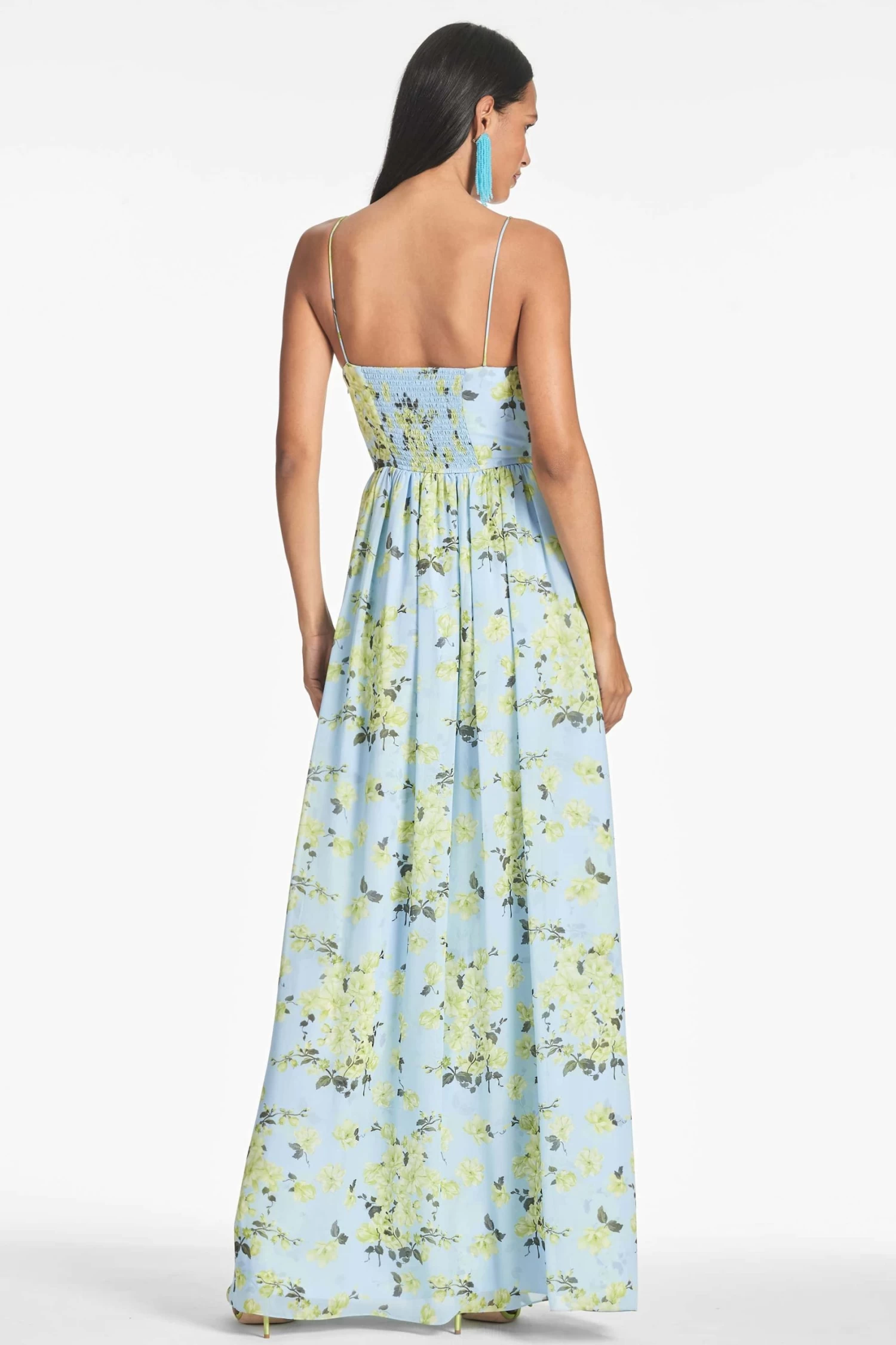 Sienna is a printed chiffon dream. She’s a classic maxi silhouette with a subtle V neckline and smocking at the back. Look no further for your perfect Spring and Summer event dress.